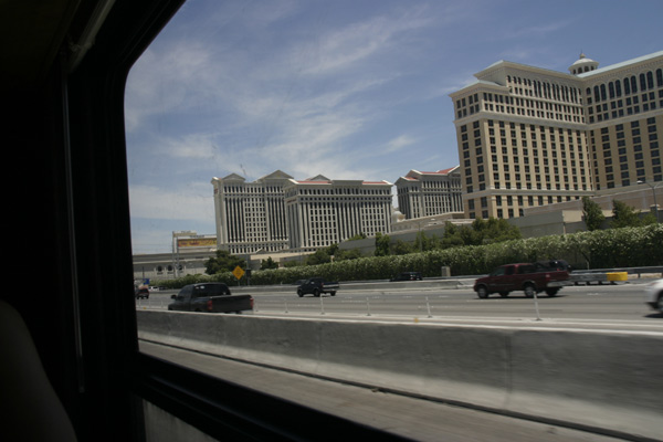 Während der Kahrt klacfern uns Werbebanner eines Outlet Centers entgegen. Plötzlich setzte sich der Blinfer, wie von Geisterhand, und das